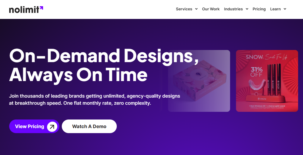 No Limit Creatives has recently gained considerable recognition as Delesign. They differentiate themselves by offering four levels of graphic design services, unlike most competitors who offer three. Like Kimp, No Limit Creatives offers a tier that includes both graphic and video design services.