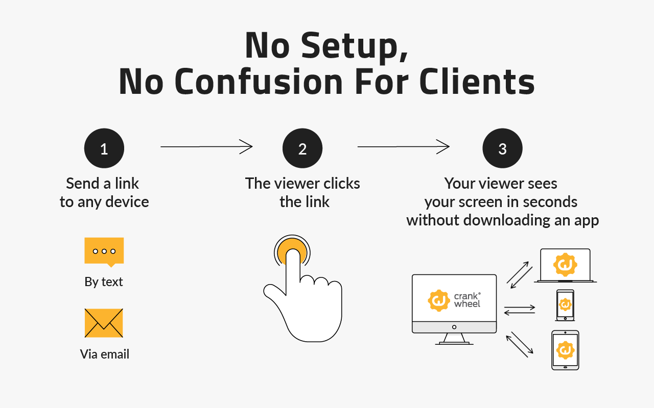 CrankWheel, a leader among online sales software, delivers an unbeatable solution for inside sales with a broad array of best sales enablement tools. This no-download, user-friendly application is designed to streamline your sales process, allowing you to showcase your products quickly and efficiently to potential customers.