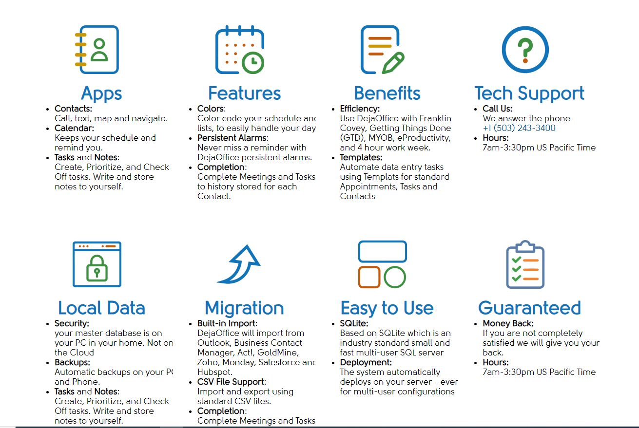 DejaOffice PC CRM is committed to making the transition to our platform as easy as possible. We offer a seamless migration of your contact lists from other CRM platforms, and our simple, straightforward interface makes it easy for users to navigate between different functionalities. Notably, we have a built-in calendar where you can enter daily tasks and schedule events, enhancing your productivity. Plus, with DejaOffice's smartphone dialing feature, reaching out to clients has never been easier.
