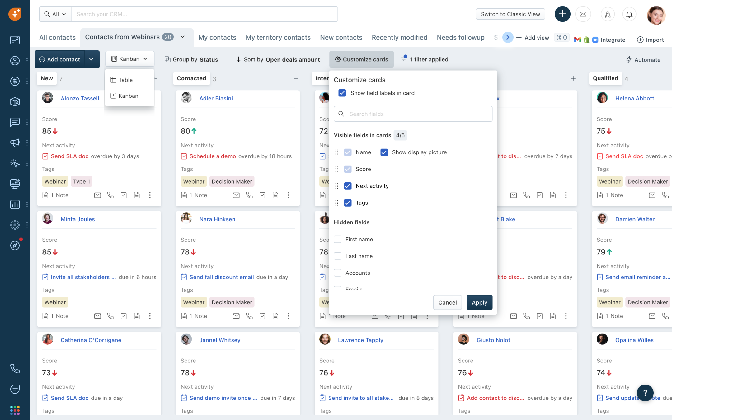 Contact and Account Management: Organize contacts into nuanced segments, fostering a detailed understanding of their email activity, audience behavior, and page visits. Our AI, Freddy, aids you in creating well-rounded profiles for your contacts and companies.