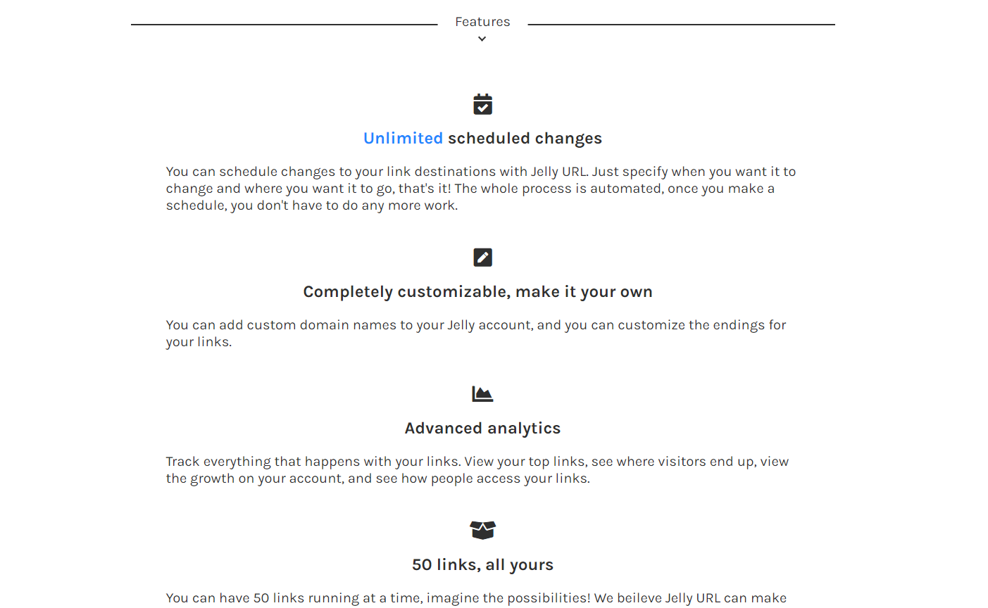 Jelly URL likely offers the primary service of shortening long URLs into shorter, more manageable links. This makes sharing links easier, especially on platforms with character limits like Twitter or in text messages.