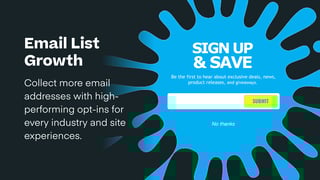 These tools, equipped with industry-leading email and SMS lead captures, advanced targeting rules, and A/B testing capabilities, work in harmony to deliver the right message to the right shopper at the right time. Our services are tailored to meet your specific needs, ensuring that your customer engagement and conversion rates are maximized.