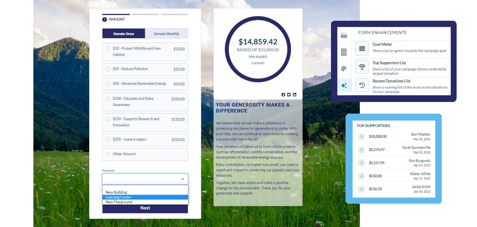 Donor Profiles: Keep track of your donors with detailed, customizable profiles.