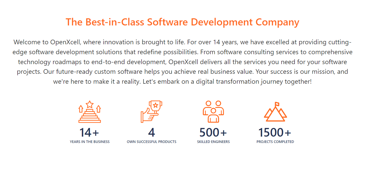 OpenXcell is a globally recognized software development company, synonymous with innovation and excellence. Our team of skilled professionals specialize in delivering high-quality, custom software solutions catering to a diverse range of business needs. As a top-tier software company, OpenXcell is committed to assist businesses in harnessing the power of technology for their growth. Our suite of services includes:- Software Development: We build seamless, efficient, and tailored software solutions that address your specific business needs.