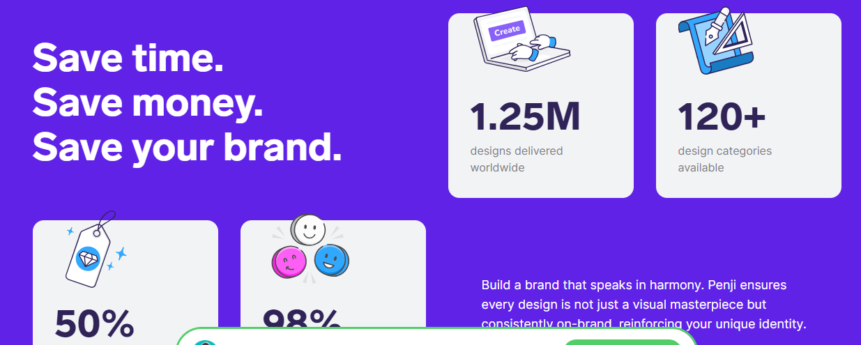Penji is a great graphic design service. It makes getting professional designs easy. When you subscribe, you can submit many projects and request over 120 design types. Penji matches you with the best designer for your needs. Every designer is carefully reviewed to guarantee top-notch quality work.
