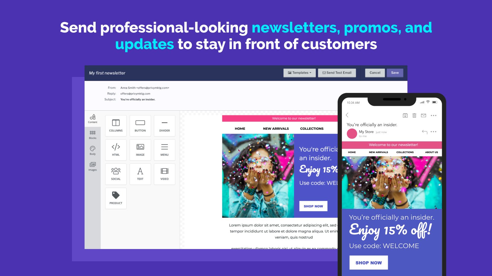 Our all-in-one platform benefits extend beyond the real estate industry. Privy is also the fastest way to grow sales with email & SMS for your online brand. From building and personalizing emails, managing high-volume sending, and email lists, we've got you covered.